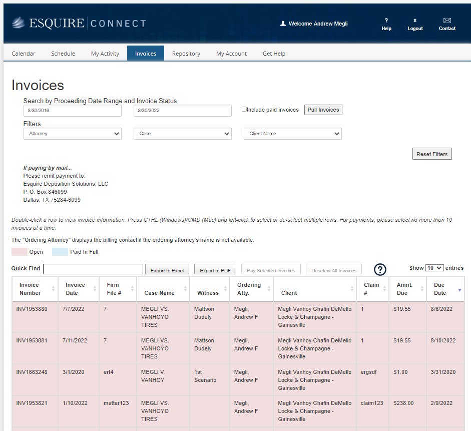 Pay your Esquire invoices on-line by credit card or electronic check (ACH)