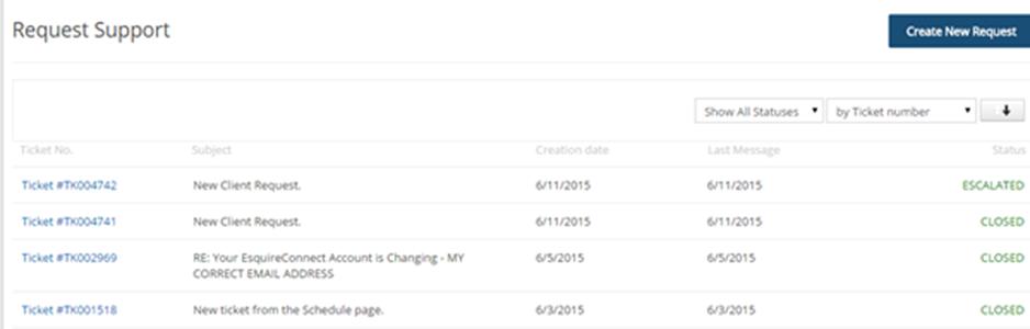 Your question, whether it is about billing, transcripts, or anything else (but not scheduling) will go to the right party within Esquire to be resolved. You will receive an email with any additional questions, or answers. All communications appears on the Request Support page.
