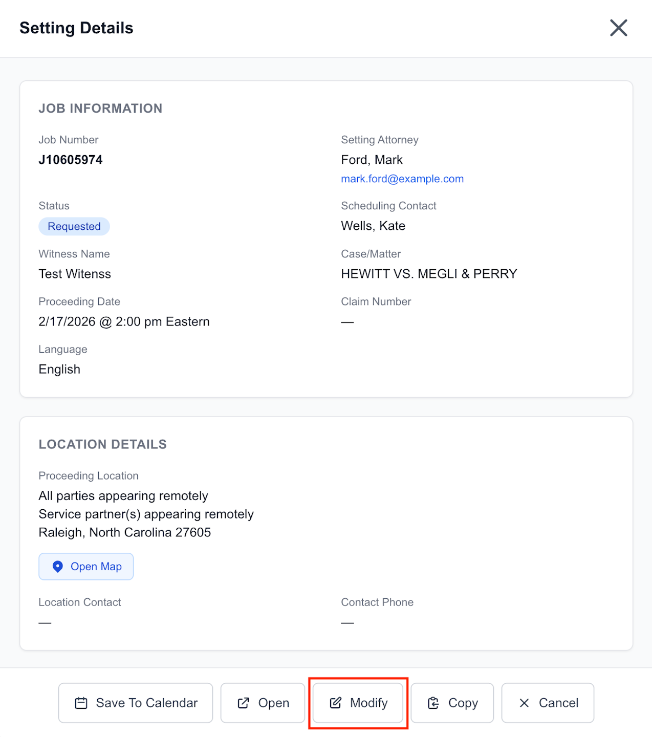 Modify/Reschedule a Proceeding